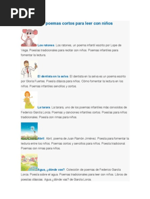 Información detallada sobre poemas federico garcia lorca cortos para niños podemos compartir. Administrador blog Niños Relacionados 2019 también recopila imágenes relacionadas con poemas federico garcia lorca cortos para niños se detalla a continuación.