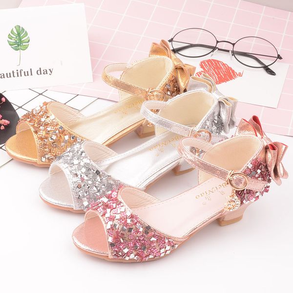 Compre Sandalias Para Niñas Moda De Verano Pescado Boca Princesa Zapatos Con Tacones De Lentejuelas Y Mariposa Princesa Sandalias Zapatos De Baile 5