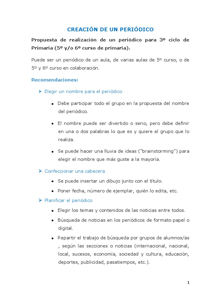 Como Hacer Un Periodico Para Niños De Primaria