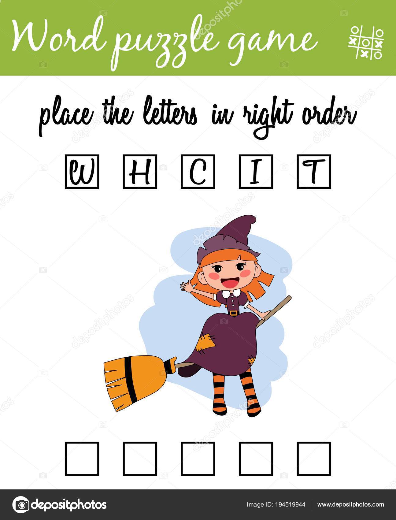 Palabras Puzzles Con Bruja Coloque Las Cartas En Orden