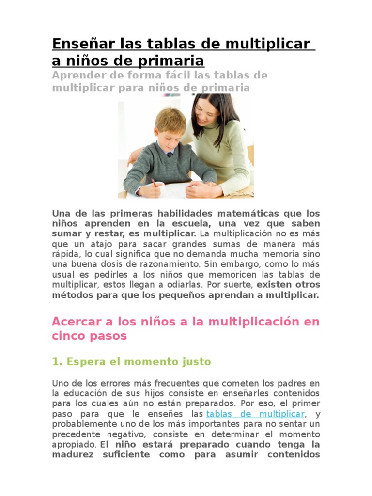 Como Enseñar La Multiplicacion A Niños De Primaria