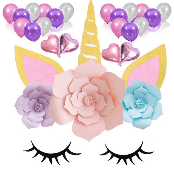 Compre Unicornio Decoraciones De Fiesta Para Niñas Fiesta De Cumpleaños Baby Shower Diy Unicornio Flor Telón De Fondo Con Brillo Cuerno Gigante Orejas