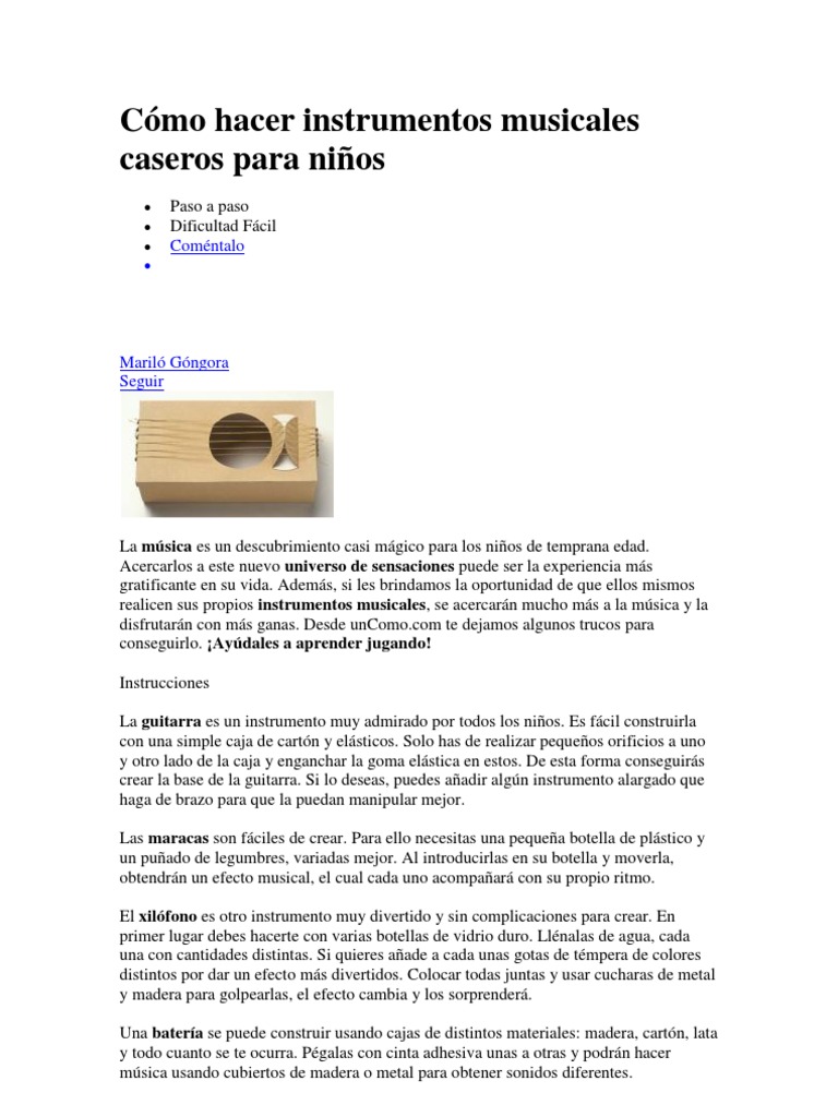 Una discusión de como hacer un instrumento musical casero facil para niños podemos compartir. Administrador blog Niños Relacionados 2019 también recopila imágenes relacionadas con como hacer un instrumento musical casero facil para niños se detalla a continuación.